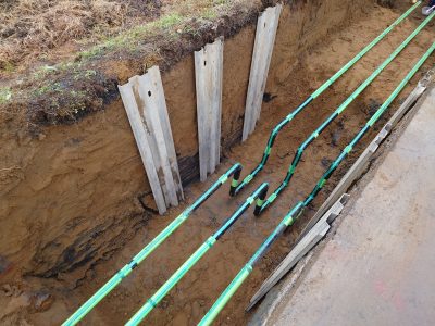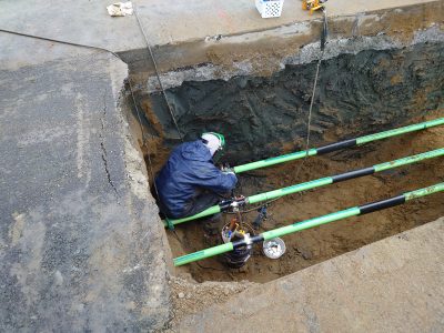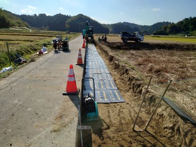 先日の現場の引き続きとなりましたが、今日は 【防護板】 と言う、地中の配管を防護するための板を設置し、最後に道路を舗装復旧して作業終了となりました。