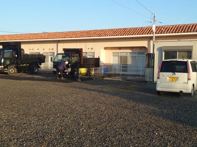 ※明日は日曜日の為、ブログの更新はお休みさせていただきます。 写真は、防護板設置完了、舗装復旧状況、明るいうちに帰って来て、全ての車両を納庫し終わった会社(笑)の3枚です。
